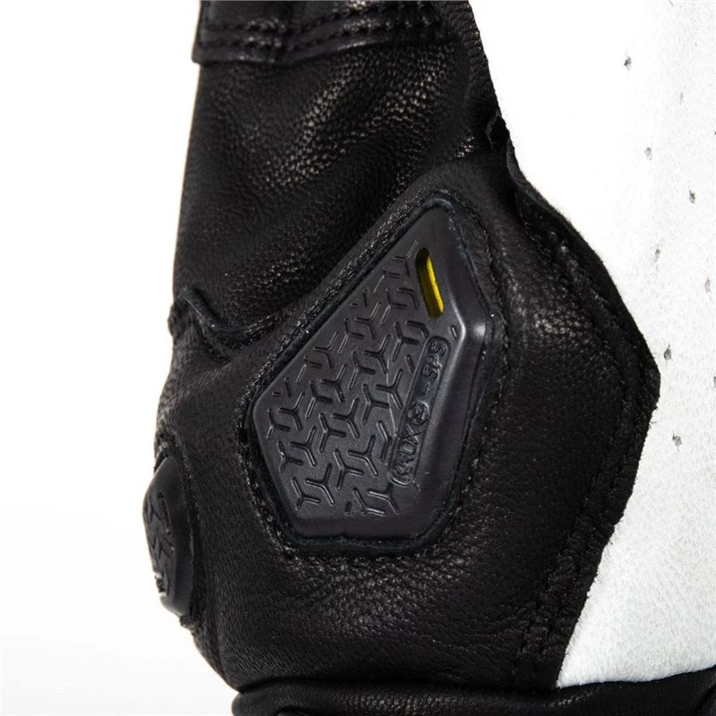 - Patented low profile Knox Scaphoid Protection System (SPS) on the palm (Patent No EP1594378) to eliminate the grab effect that occurs when a leather palm makes contact with the road, reducing the risk of hyper extension which can be the cause of a broken scaphoid