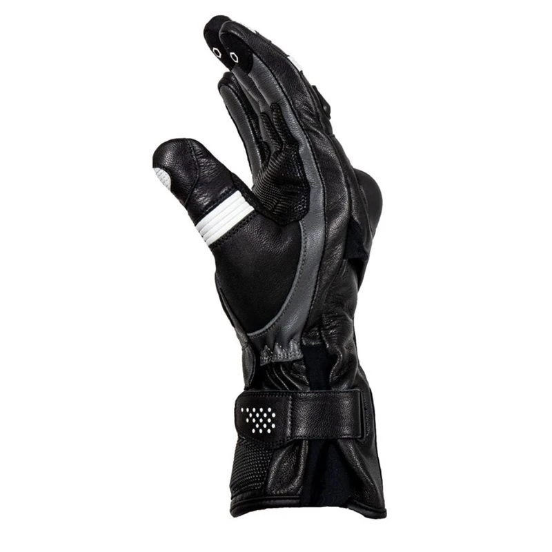 It has clean and stylish lines and works as well on the road as it does on the track. It’s made from premium strong goat skin leather. This is complemented with a new innovative two-part TPU knuckle guard, which features air channels, extends over the metacarpals and out to the little finger, and has added Micro-Lock for impact absorption. The reinforced leather wrap on the edge of the hand delivers added strength with a smart single pull eyelet strap for easy and secure fitting. This covers the seams on the side of the hand where most riders tend to fall in the event of a crash.