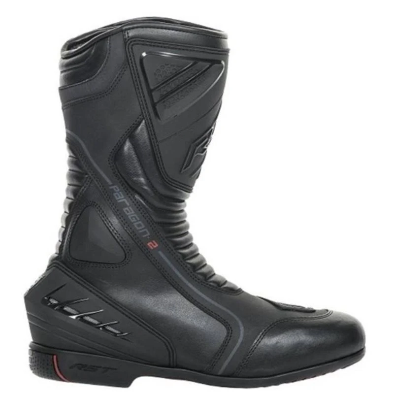 The New RST Paragon 2 CE Waterproof Boots are designed for Touring or Serious Street Riders having all the boxes ticked for those purposes. Hard Coated PU Leather matching with PU Coated Shin, Ankle & Heel Protection means the RST Paragon Boots are Durable and Protective at the same time. The One Piece Heel Cup adds extra protection in the rear of the boot and with a Sinaqua Waterproof Breathable Membrane Protecting from the Rain, the RST Paragon Boots are a great option for the man riding long distances. The Sole is made from a Multi Density Anti Slip Material meaning not only is it hard wearing, but you also get loads of grip on the foot pegs too.