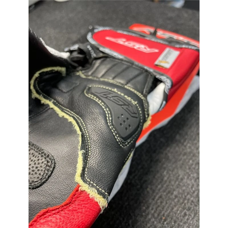 As part of RST’s upgrade on the TracTech Evo 4 they are using as much Kevlar as possable, due to the nature of the fabric and the way the glove is hand made there is a “fringe” of Kevlar on the palm double layer finish after the layers have been stiched. Every Glove is hand finished so some will have a larger fringe than others. This is just part of the manufacturing process and gives the gloves their unique and personal look.