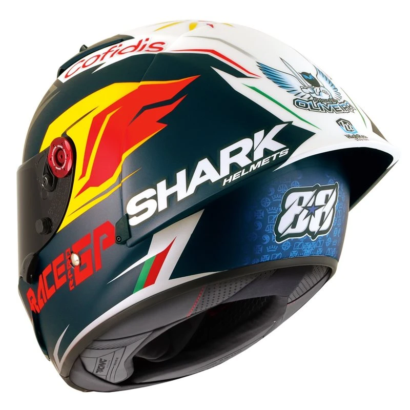 Designed by SHARK for the track, the Race-R PRO GP is the ultimate racing full-face motorcycle helmet! Its distinctive sign? A high performance aero spoiler developed in close collaboration with our top riders. Tested in competition in the most intense situations, the Race-R PRO GP is the perfect combination of unique design, safety, aerodynamics, technological innovations and premium finishes.
