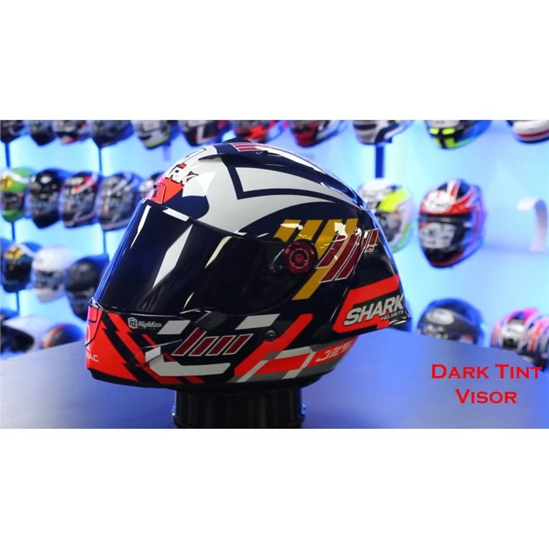Designed by SHARK for the track, the Race-R PRO GP is the ultimate racing full-face motorcycle helmet! Its distinctive sign? A high performance aero spoiler developed in close collaboration with our top riders. Tested in competition in the most intense situations, the Race-R PRO GP is the perfect combination of unique design, safety, aerodynamics, technological innovations and premium finishes.