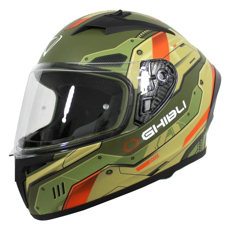 Vemar Ghibli Robot Motorcycle Helmet (Matt Khaki/Orange)