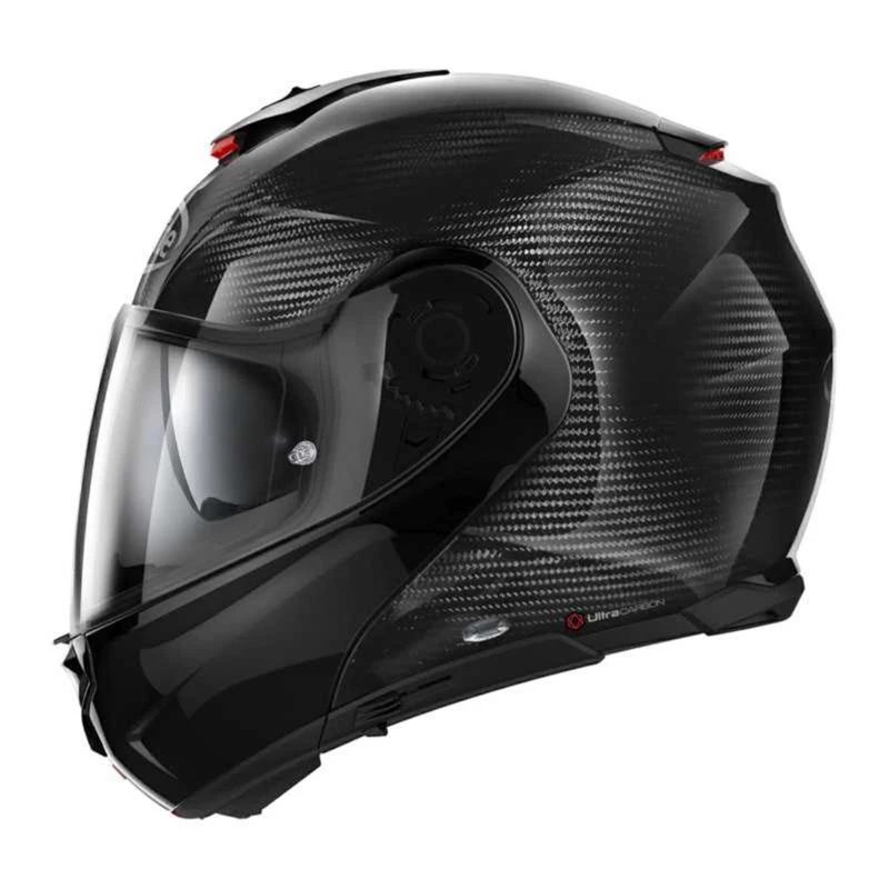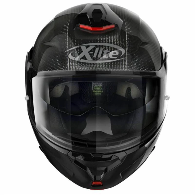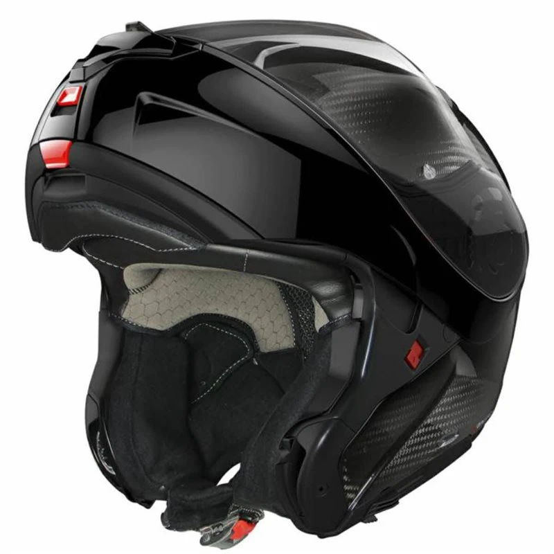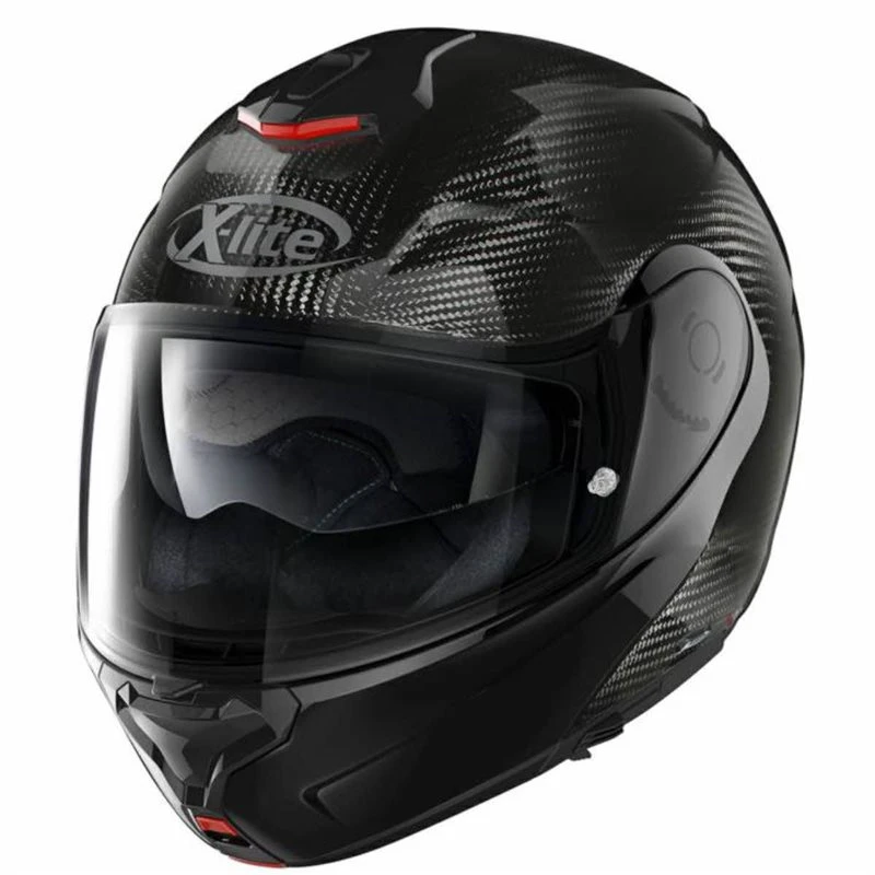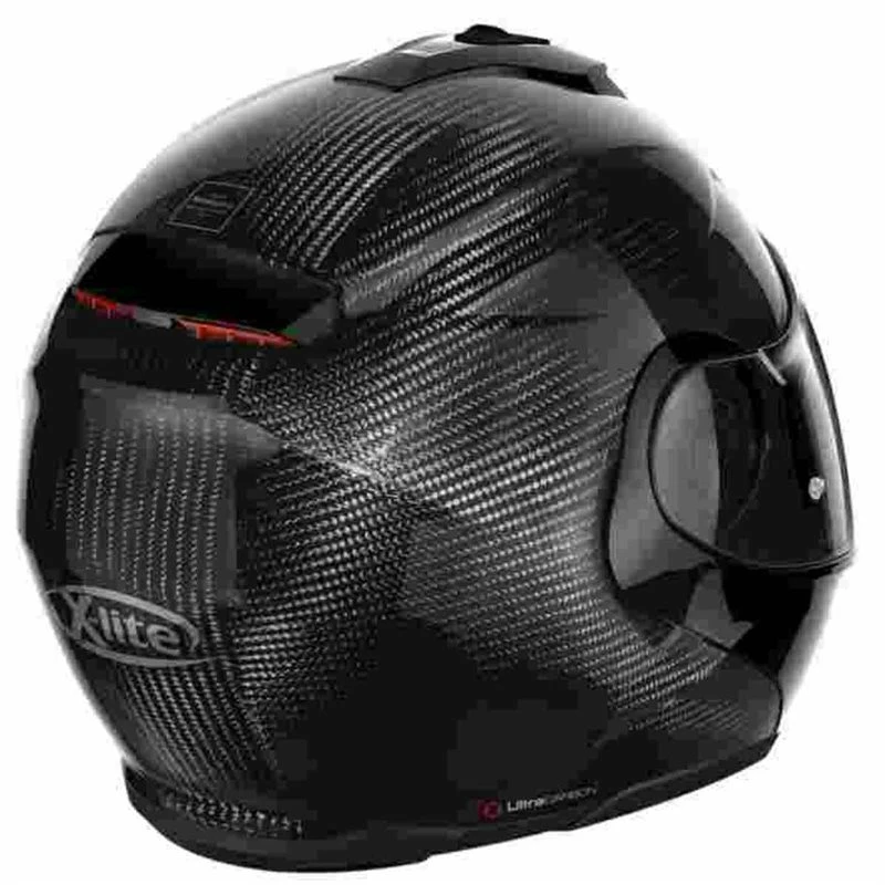 This is X-lite’s exclusive high-carbon content version of the flip up helmet. It is characterised by an elegant and dynamic design, a striking appearance and an ample range of technical features, some of which are highly innovative. Carbon-rich construction, three outer shell sizes, double P/J homologation, ultrawide visor, VPS sunscreen (adjustable in various positions and fitted with the automatic retraction system), rotation of the chin guard with elliptical trajectory, exclusive double action chin guard opening mechanism, double lever Microlock2 retention system with micrometric adjustment, Carbon Fitting Racing Experience inner comfort padding (with an innovative net construction), exclusive Liner Positioning Control (LPC) system and set-up for the new generation N-Com communication system.